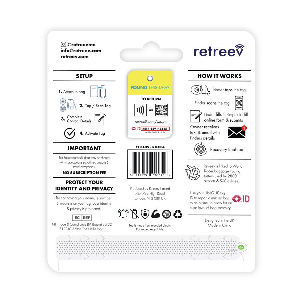 Activate your tag by tapping the tag, scanning the QR code or entering the unique ID found on the tag into retreev.com/setup.